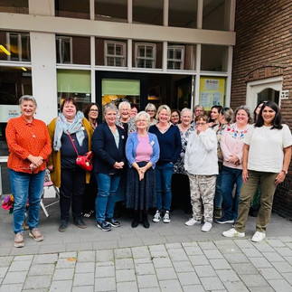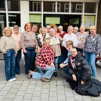 Wait, what Bell?? 😂 I taught this stocking in two classes in The Netherlands recently, and everyone in BOTH classes thought that this was a Christmas bauble, and wondered why it had holes, or dots on it. It's a big JINGLE BELL everyone! The kind that Santa has on his sleigh, that makes a beautiful clear and crisp Christmas ring as he flies through the sky. (Have you seen the movie The Polar Express? That's what was in my mind when I designed this. You haven't seen it?? Ooooh it's one of my very favourite Christmas movies, queue it up right now!). I'd love to know if anyone realised it was a bell.... or do you all think it's a bauble? Here's some photos of my happy students stitching in Den Bosch. And one of me with my dear friend Wietske, who owns the beautiful store I teach in there.